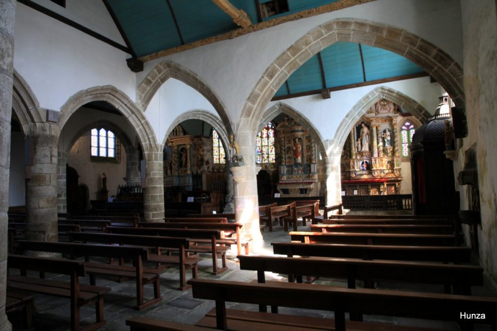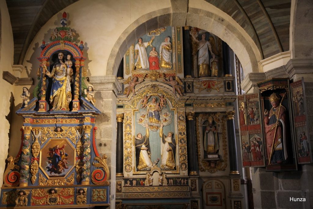 L’enclos paroissial de Lampaul-Guimiliau se distingue par son église et surtout par son intérieur richement orné, avec un remarquable ensemble de retables et de sculptures en bois.