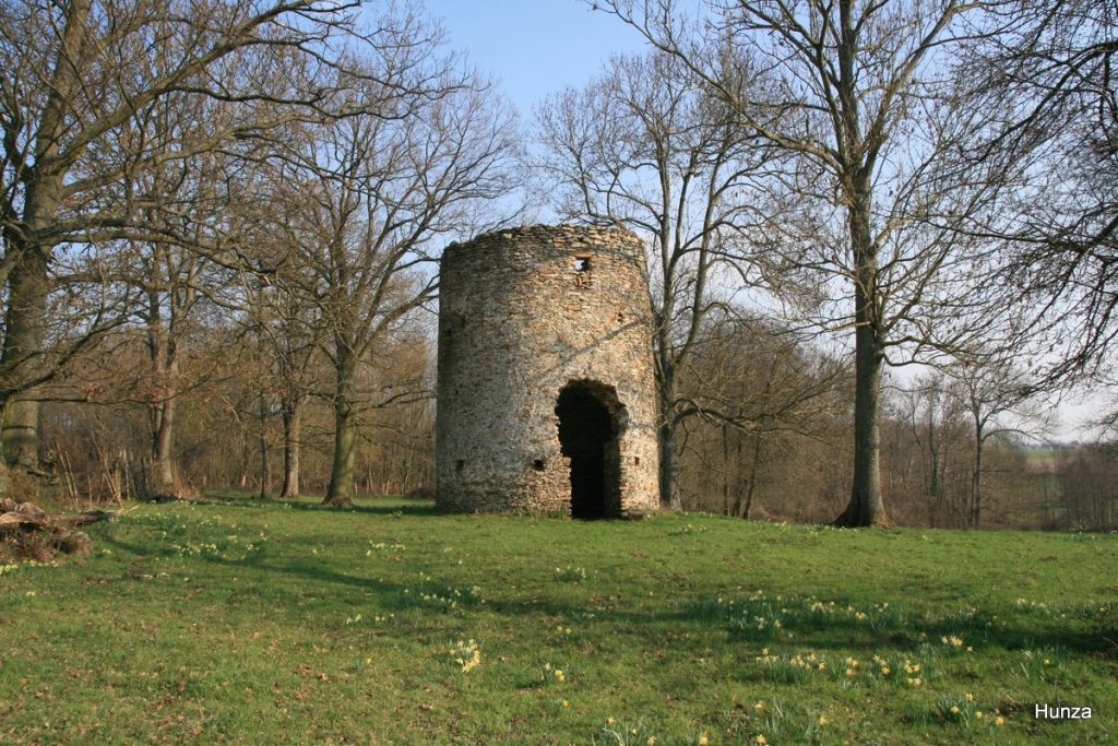 Le GR1 remonte ensuite progressivement sur le plateau avec un dénivelé positif de 25 m. Peu avant de passer sous une ligne à haute tension, vous apercevez sur la droite, dans un champ, les vestiges de la « tour de l’Aiguillon ».
